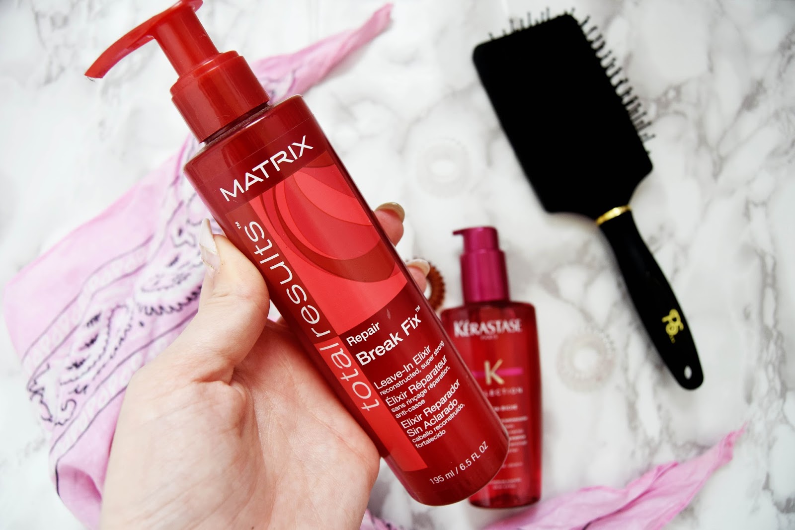 Quando adquiri o meu Matrix Break Fix, a marca era exclusiva em cabeleireiros. Foi o primeiro produto que testei da Matrix, já há cerca de dois anos atrás, mas manteve-se na minha rotina até ao dia de hoje. Um dos maiores problemas é do meu cabelo é definitivamente a quebra - em alturas mais complicadas, chego até a sentir que o meu cabelo não cresce. Este leave-in promete uma reconstrução da fibra capilar, reparando instantaneamente os cabelos mais quebradiços devolvendo-lhes o brilho natural. Utilizo-o após o banho, com o cabelo humedecido. Utilizo apenas uma noz, que aplico do meio do cabelo até às pontas. Não dispenso esse produto, porque sinto que ele está à altura das suas promessas. Além de sentir que controla totalmente a quebra, gosto imenso que não pese no cabelo. Não dá a tão habitual sensação pastosa e inclusive oleosa, que o meu cabelo adquire com outros produtos do género. O cheiro é bastante agradável (quase tradicional de cabeleireiro) e mantém-se no cabelo. Como referi acima, sinto que ajuda bastante no styling, especialmente no controlo do frizz.